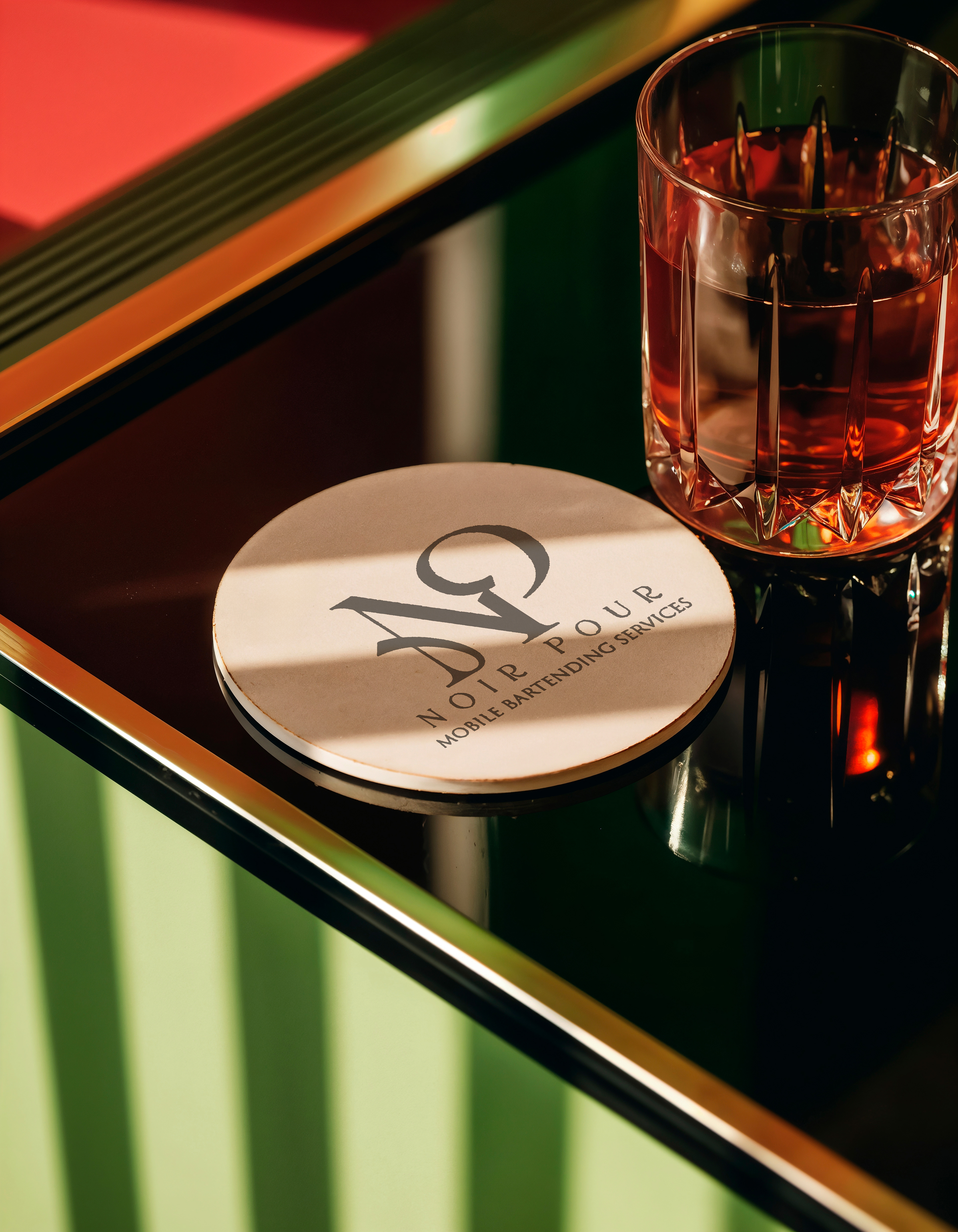 This elegant and modern logo was created for Noir Pour, a premium mobile bartending service. The design features a custom monogram combining the initials N and P, crafted to evoke sophistication, precision, and class. The rose gold foil effect against a black leather-textured background adds a tactile richness, capturing the upscale experience the brand delivers. The serif typography reinforces the brand’s refined identity, making it suitable for luxury events and private parties. The logo was designed to be versatile across print, embroidery, menus, and digital branding.